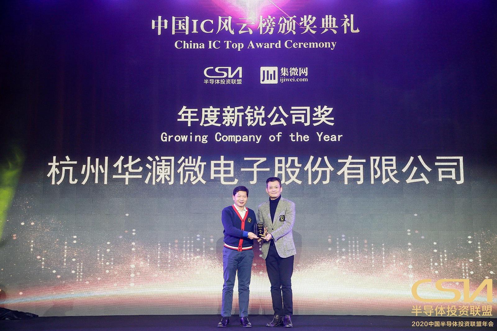 1月2日, 由中國半導體投資聯盟、集微網共同舉辦的“2020中國IC風云榜”在北京正式揭曉,杭州華瀾微電子股份有限公司以持續的耕耘、踏實的業績,在贏得市場的同時也獲得了業界尊重,獲得“年度新銳公司”獎項。